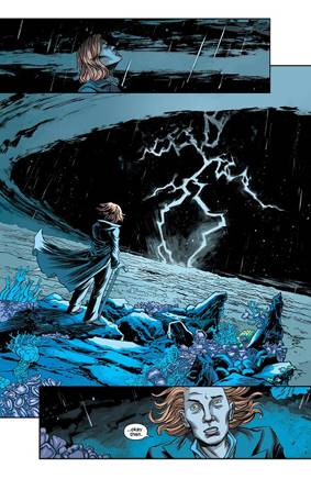 Declan Shalvey está lejos de ser uno de mis dibujantes favoritos pero su narrativa es siempre agradable y fluida, lo cual hace que sea sencillo amigarse de sus trazos. Tiene un diseño de personajes interesante y se esfuerza por hacernos entender el peso que tuvo en los mismos aquel incidente, las facciones, vestimentas e incluso posturas de casi todos ellos han cambiado notablemente con los años y Shalvey nos lo hace notar todo el tiempo. La sencillez de sus trazos, casi sin sombra alguna, se disfruta mucho gracias a la tremenda labor de Jordie Bellaire como colorista, una artista que ya me había sorprendido gratamente con su trabajo en Pretty Deadly y que acá cierra cada página con un laburo digno de aplaudir. No sólo se encarga de darle profundidad y buen clima a las escenas sino que además pone un esmero enorme en detalles preciosos como manchas de barro u óxido en un Jeep viejo y reventado, ojeras sutilmente sugeridas en un personaje que hacía días viene durmiendo mal, mugre en la ropa de un personaje desaliñado… Allá donde Shalvey se tira un poco a chanta viene la amiga Bellaire y nivela para arriba.