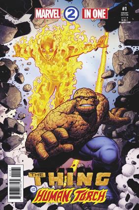 Con las asperezas entre Marvel y FOX pulidas y las negociaciones casi cerradas a favor de la primera, en Marzo del presente año el jefe de coordinadores C.B. Cebulski anunció finalmente el retorno de los Fantastic Four a una serie regular como parte de la iniciativa “Fresh Start” que la editorial pondrá en marcha en este segundo semestre. Mientras tanto, una serie regular funciona como un prólogo de este anticipado y ansiado regreso, y es la que voy a recomendar en esta entrada: Marvel Two-In-One (segunda época), el regreso de un título muy divertido que supo volver locos a millones de lectores combinando en cada número a nuestro querido Ben Grimm con un héroe invitado. El vol. 1 de esta serie regular que comenzó su andadura los primeros meses de 1974 logró llegar a la para nada despreciable cantidad de 100 números y 7 anuales, y por sus páginas pasaron autores de la talla de Steve Gerber, Jack Kirby, Marv Wolfman, John Buscema, John Byrne, Frank Miller y George Pérez.