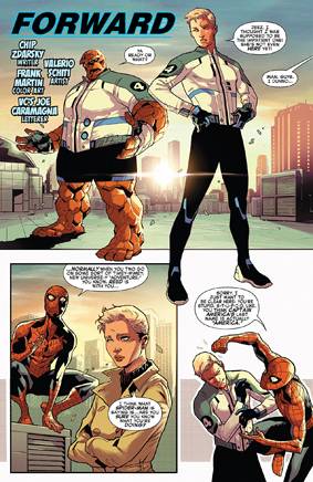 En Diciembre del año pasado, como parte de los lanzamientos relacionados con la macro-saga Legacy, apareció el primer número de esta nueva entrega, con guiones del canadiense Chip Zdarsky, a quien ya conocemos por su trabajo en Sex Criminals y Howard the Duck, y dibujos del británico Jim Cheung, famoso en Marvel por no poder sostener la titularidad en una serie regular más allá de 2 o 3 meses. El formato actual difiere un poco del que tenía la serie clásica, ya que ahora la pareja que llevará adelante el rol protagónico será fija: ni más ni menos que los “sobrevivientes” de nuestra querida familia fantástica, Ben Grimm y Johnny Storm, sumado a una fuerte participación del Infamous Iron Man, el Doctor Doom “reformado” de Bendis.