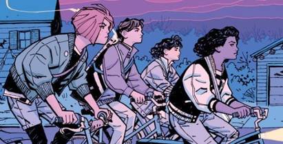 De todos modos, Paper Girls no es Saga ni Y: The Last Man, y dudo que con el tiempo termine trepando al podio de sus mejores series, pero es un comic precioso que logra que te encariñes con sus personajes y necesites saber cuál es el destino de los mismos. El 2016 podríamos decir que, en lo que se refiere a la televisión al menos, fue el año del revival de los ’80, con la producción de Netflix Stranger Things a la cabeza, pero Vaughan –que cuenta entre sus créditos con muchas participaciones como guionista de televisión- la vio venir antes y se decantó en octubre del 2015 con esta historia de cuatro adolescentes que reparten diarios en la Cleveland natal del escritor la madrugada posterior al 31 de Octubre de 1988. Tanto el guionista como el dibujante fueron muy cuidadosos a la hora de promocionar esta serie, y la editorial la lanzó al mercado prácticamente sin haber anticipado nada sobre su contenido, como si le exigiera a los futuros lectores que apuesten casi a ciegas por esta propuesta, motivados exclusivamente por los autores involucrados.