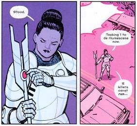 La manera en que logra esto es a través de los personajes, por supuesto. A nadie sorprendo si enuncio que los diálogos de Vaughan tienen una frescura y naturalidad que pocos escritores en este medio logran, y sumado a esto suele acompañarlo un dibujante que logra transmitir gestos y sutiles reacciones de manera clara y transparente, con una narrativa fluída que termina por cerrar una obra no sólo digna de leer, en la mayoría de los casos indispensable.