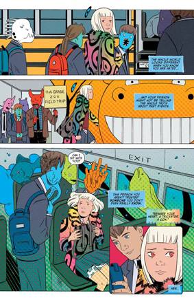 Castellucci encuentra la manera de transpolar los conceptos del realismo mágico de Vargas Llosa y García Marquez prácticamente en cada página del comic, y hacer convivir esas ideas y visiones con un personaje extremadamente extrovertido que se pasa gran parte del tiempo reflexionando incoherencias o intentando encontrarle la vuelta a ideas inconexas disparadas por las sensaciones que experimenta al ponerse en contacto con el nuevo entorno en contraposición con lo que había vivido hasta el momento en Meta. Todo esto con las constantes intervenciones de los retazos de recuerdos que cada tanto afloran de Megan y los sentimientos que acarrean. Este delirio surrealista jamás podría haber encontrado un buen puerto si no fuera por la destreza de una artista como la canadiense Marley Zarcone, que con sus trazos limpios y sencillos logra transmitir en todo momento esa atmósfera extraña e inquietante que no deja de resultar conmovedora y maravillosa.