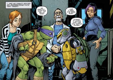 El gancho principal que tendría este comic y el motivo por el cual IDW se blindaba contra posibles críticas negativas era la colaboración del propio Kevin Eastman en los guiones e inclusive aportando bocetos, al menos en los primeros cinco números de la serie. Nadie más indicado para “resetear” a estos personajes que uno de sus creadores, ¿no? El elegido para reemplazar a Eastman en los lápices desde el sexto número es Dan Duncan, un egresado de la Joe Kubert School que logra cerrar un trabajo muy acertado. Por otro lado, el guionista que terminará por pulir los plots del maestro es Tom Waltz, un escritor que contaba con un enorme historial dentro de esta editorial.