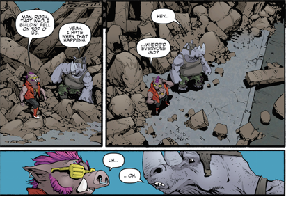 ¿Una rata que aprende artes marciales por imitar a su amo? ¿Tortugas bañadas en un líquido experimental que luego son casualmente encontradas por esta misma rata? La suerte y la casualidad tomaban demasiado partido en este comienzo y le quitaban credibilidad al relato, aún cuando el mismo sería protagonizado por personajes antropomórficos. Pero la frescura y originalidad de este comic primaban, y lograban que nosotros, los lectores, nos permitiéramos hacer todas las concesiones necesarias para poder disfrutar sanamente de estas aventuras.