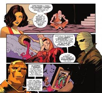 Y si hablamos de lápiz, cómo no mencionar el magnífico dibujo del costarricense Dan Mora. Y ojo con el enunciado que voy a tirar acá porque es polémico como el valor de la camiseta que usó el Diego contra los Ingleses en el mundial ’86: es lo mejor de esta serie. Sí, exacto, tenes a Mark Waid que regresa a DC y te escribe tremendo comic, pero lo mejor es este pibe (que ya no es tan pibe, tiene al menos 35 años y una nominación al Eisner), que la deja así de chiquita en el diseño de personajes, en la puesta en página, pero sobre todo en la narrativa y la manera en que entiende cuando tiene que pelar chapa de su estilo y cuando está bien remitir a un Norm Breyfogle o a un Jim Lee, ponele.