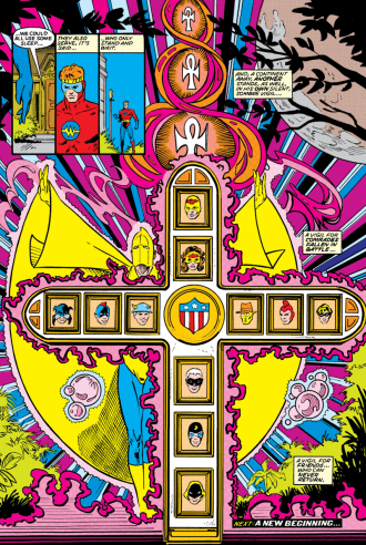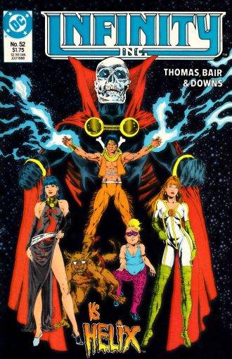 Ahora sí, el nº51, es el casamiento de Lyta y Hector. Grundy, dominado por la nueva Harlequin (que se hace pasar por Jade) usa el poder de Mr. Bones para asesinar a Skyman. Siguiente número contra la Injustice League y Helix, todos a vengar a Pemberton, y así desembocamos en un último número (el 53, de Agosto del ‘88) en el enfrentamiento final contra los villanos, pero es el final de la base del grupo, los Studios Stellar. Fin. Thomas promete una pronta serie de Helix que nunca se concreta y los Infinitors tomarán rumbos diversos (incluyendo varias muertes en las páginas de Eclipso, convertirse en parte de la mitología del Sandman de Neil Gaiman, ser reclutados por la Liga post-Giffen post-Jurgens, dirigir una agencia que controla súper seres, o integrarse a la nueva Justice Society, entre otros).