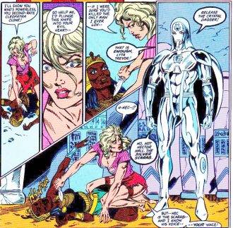 Ahora corresponde leer el Outsiders Special 1 y la aventura sigue en el Infinity Special 1 con tapa de Eduardo Barreto… pero por dentro nos encontramos con el horror: Argondezzi entintado por Gustovich. La historia que involucra a los Outsiders, la Force of July, el Baron Bedlam (que en realidad es el Psycho-Pirate) no es mala, pero ‘el arte’ hace daño cuadro a cuadro. Esto será una constante en el título hasta su final, ya que los lápices pasarán a estar a cargo de Argondezzi, Gustovich, Michael Bair (el más rescatable) y Lou Manna, irremontables por entintadores como Rodríguez, McLaughlin, Bob Downs o incluso el mismísimo De Zuniga. Los números 43 y 44 giran en tono al enfrentamiento con el Scarab dominado por el Ojo de Ra y su aparente muerte, el siguiente es la segunda parte de un crossover con los Teen Titans (viene del nº38 de esa colección), el 46 (enero del ’88) es crossover con Millenium. Acá Marcie Cooper, la novia de Obsidian, se descubre como una Manhunter y te revelan que siempre fue la nueva Harlequin, mientras van por el Floronic Man desde la Millenium nº3. Nuevo crossover con Millenium y Marcie además de Manhunter resulta ser la nieta de Dan Richards, el Manhunter original de la Golden Age y ella lo asesina.