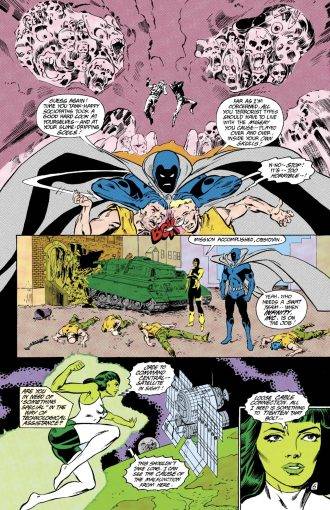 El nº 48 hace foco en Nuklon y el 49 se llama “The Sandman Cometh…” donde reaparece el personaje de Jack Kirby de los ‘70s, pero en lugar de Garret Sandford bajo la máscara está… Hector Hall. Para Mayo del ’88, en el festejo del número 50 (número doble), invaden las criaturas del mundo fantástico, se revela que el Wizard no murió en Calgary, y Sandman se lleva a Lyta. Acá entra un triste Annual 2, secuela 46 años después del Annual 1 de Young All-Stars donde se termina de cerrar el plot de Mekanique y Per Degaton.