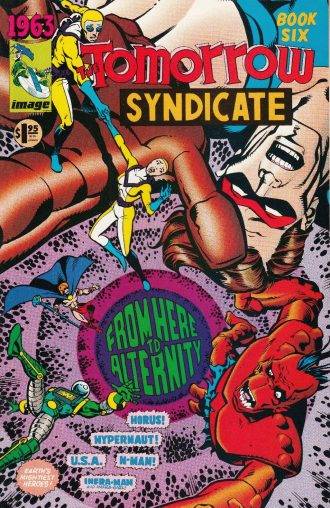 El cuarto, “Tales from beyond”, otra antología, traía una historia de “The Unbelievable N-Man” (sin duda, The Incredible Hulk), y Johnny Beyond, una suerte de Doctor Strange, más piscodélico que el propio místico de Marvel, pero sin capa, ni supertraje. El quinto, “Horus Lord of the Light”, era una suerte de Thor, pero enraizado en la mitología egipcia. El sexto y último, reúne a varios de los héroes de los comics anteriores, para formar parte de un grupo inspirado en The Avengers, y se tituló “The Tomorrow Syndicate”, precisamente, el propio nombre del grupo. El último número de la mini-serie termina en un cliffhanger que prometía un capítulo final en el que los héroes de 1963 se encontrarían (enfrentarían, quizás) a los héroes modernos de los distintos estudios de Image, como Spawn, Savage Dragon, Youngblood, Shadowhawk, Wildcats, etc, en un anual de 80 páginas.