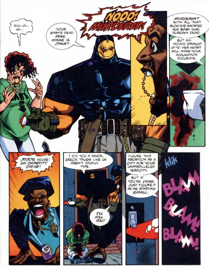 El tono de la historia la ubica dentro de la tendencia ultraviolenta, que por entonces formaba parte de la dieta mensual del comiquero adolescente que vivía a base de pizza y hamburguesas, que en definitiva era el target primario de los comics de la época. El mismo lector que se deleitaba con X-Men, Flash, o Gen13, también lo hacía con comics como Lobo, Evil Ernie, o Spawn. ¿Por qué no iba a gustarle Body Bags? Sin duda tenía todos los ingredientes para encajar pefectamente en los gustos del público comiquero de los ´90, pero con la distinción de estar dibujado mucho mejor que la mayoría de lo que solía verse normalmente en las bateas. Incluso comparado con productos actuales, me arriesgaría a decir que el trabajo de Pearson sale muy bien parado.