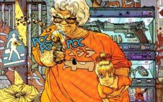 A todo esto se suma el uso muy original que Miller y Darrow hacen de las cientas de referencias culturales que tiran constantemente. Muchas de ellas están a la vista, y sin dudas cada lector va a cazar alguna que otra, o varias, pero lo sorprendente es la forma en se utilizan. Por ejemplo, el auto que maneja Nixon es un Eastwood, mientras que robot a la que persigue a lo largo de buena parte de la historia (una anciana con sobrepeso, muy violenta y asesina), es un Ford Stallone. Como viejo fan de Rocky, me encantó ese detalle.