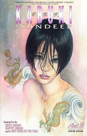 Entre fines del ´96 y comienzos del ´97, se publica la miniserie de tres números “Skin Deep”, que es la última que sale a través de Caliber. A partir de 1997, se publicará a través de Image, que saca varios especiales prestige, y one-shots, previos a la siguiente miniserie, titulada simplemente “Kabuki”, que se compone de 9 números, y junto a la miniseries de Scarab, es lo último del personaje publicado durante los ´90.