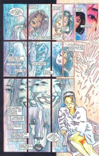 Ya en la primera serie, Mack demuestra una capacidad tremenda para experimentar y poner en practica técnicas y estilos diferentes, a veces en cada página, para plasmar cosas que otros artistas menos seguros no se atreverían nunca a intentar. El dominio que Mack tiene del blanco y negro, ya desde las primeras páginas del primer número, te dejan con la boca abierta: pensás » si esto es así al comienzo, qué vendrá después». Bueno, lo que viene después se pone cada vez mejor.