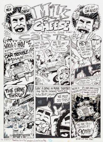 Algo tiene Milk & Cheese que la hace una obra irremediablemente de los ´90, y es que de por sì, se trata de una época de mucho inconformismo. En la esencia del humor satírico que Evan Dorkin introduce en estos personajes, está esa necesidad de rebelarse, protestar, y hacer algo al respecto. Es precisamente ese mismo impulso que llevó entonces al surgimiento del grunge y el hip hop como movimientos culturales que por entonces se introdujeron con tanta fuerza en el público joven, cada vez más alejado del mainstream rockero que ya nada tenía que ver con la idea de rebelión contra el sistema que alguna vez llegó a representar.