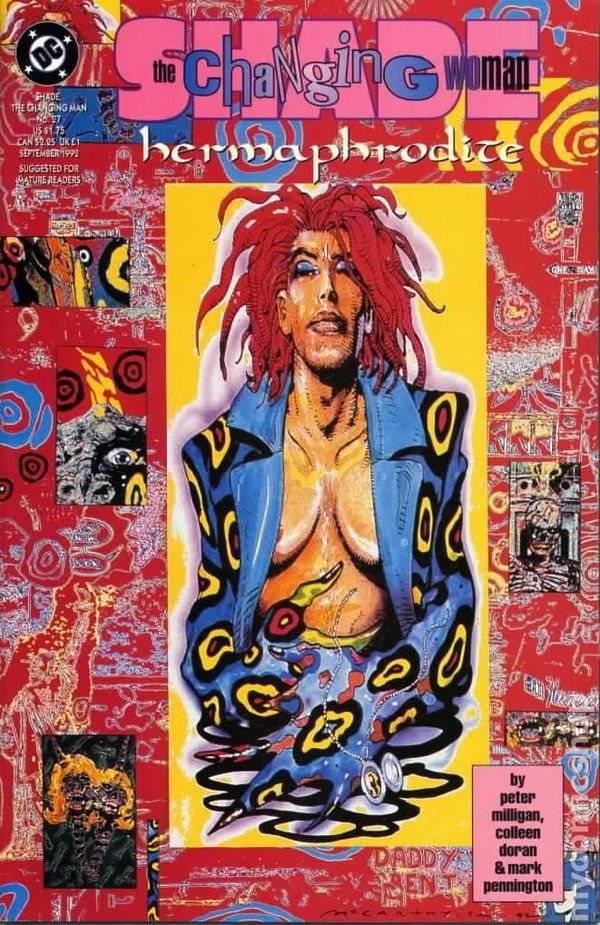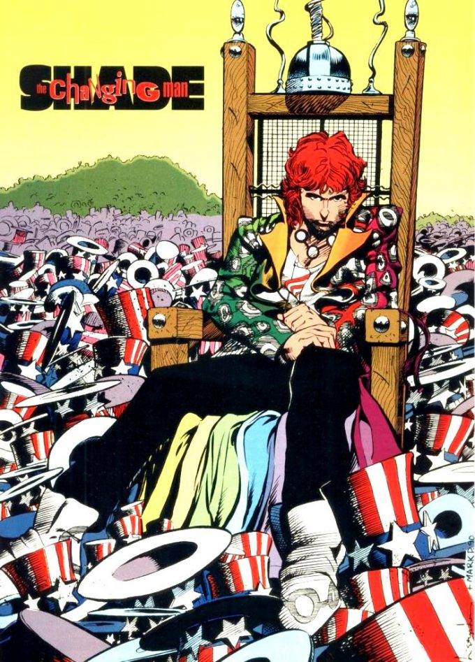 El primer proyecto de Milligan en DC fue la miniserie “Skreemer”. Posteriormente, en Julio de 1990, seria lanzada “Shade the Changing Man”, en la que Milligan recupera y replantea al viejo personaje de Ditko. En esta nueva historia, Shade es Rac Shade, un poeta de un mundo alternativo llamado Meta, que se encuentra unido al nuestro por lo que se conoce como “The area of madness” (la zona de la locura). Mediante el uso del “madness vest” (chaleco de la locura), Shade puede transportar su conciencia a nuestro mundo, y tomar posesión de alguien que acabara de morir. El gran problema de Shade, y el disparador de toda la serie básicamente, es que es engañado para tomar posesión de un cuerpo más tiempo del aconsejado, por lo que el suyo que aún se encontraba en Meta, muere y se pudre. Esto lo obliga a quedarse en la Tierra, en el cuerpo del que tomó posesión, precisamente el de un asesino en serie llamado Troy Grenzer el cual está siendo perseguido por la policía tras escapar de la ejecución (estaba condenado a la silla eléctrica), y que había sido atrapado luego de matar a los padres de la otra protagonista del comic, Kathy George. Con cierta dificultad, Shade logra convencer a Kathy que no es realmente el asesino y se hacen amigos. Por lo menos al comienzo, ya que a medida que progresa la serie el vínculo se hará mucho más íntimo.